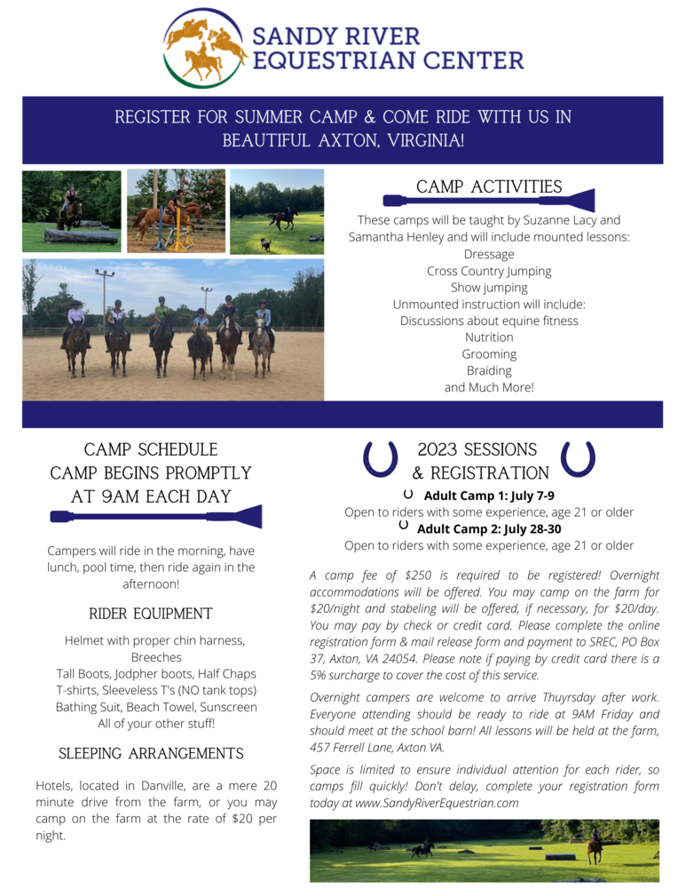 Sandy River Equestrian Center was established in 1990 as a boarding, training, and lesson facility with an emphasis on eventing. In our program, we emphasize safety, soundness, and responsibility.